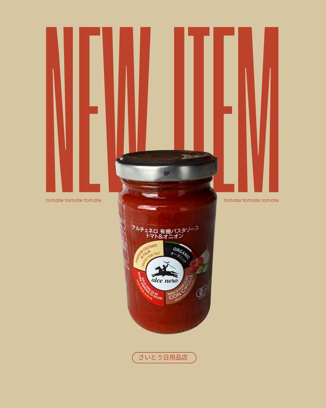 有機トマトのやさしい甘みと、玉ねぎのコク。 素材本来の味をいかした、シンプルで使いやすいオーガニックパスタソースです。 忙しい日も、あえるだけで満足感のある一皿に --------------------------------------------------- 特徴 ・有機トマト使用 イタリアで有機栽培されたトマトを使用。自然な甘みと酸味のバランスが特長です。 ・トマト&オニオンの定番配合 玉ねぎのやさしいコクが加わり、パスタはもちろん幅広い料理に使いやすい味わい。 ・シンプルな原材料 素材の味を活かした、毎日の食卓に取り入れやすいパスタソースです。 ・温めるだけで完成 茹でたパスタにあえるだけ。時短調理でも満足感。 -------------------------------------------------------- ストーリー(生産背景・想い) 《ブランド名》アルチェネロは、1978年創業のイタリア有機食品ブランド。 「自然と人にやさしい食品づくり」を大切にし、有機栽培原料と伝統的な製法を守り続けています。 毎日食べるものだからこそ、安心して選べる品質を。 ---------------------------------------------------------- 使い方/食べ方 ・パスタソースとして(1瓶で約2〜3人分) ・ラザニア、グラタン、ミートソースのベース ・鶏肉や白身魚の煮込みソースとしてもおすすめ ーーーーーーーーーーーーーーーーーーーーーー スペック表 原材料:有機トマト、有機たまねぎ、有機食用オリーブ油、食塩 内容量:200g 原産国:イタリア 栽培・製法:有機栽培原料使用 保存方法:直射日光・高温多湿を避けて常温保存 賞味期限:製造日より約3年(※入荷時点で十分な期限のものを発送) アレルゲン:なし(特定原材料等28品目) ーーーーーーーーーーーーーーーーーーーーーーーーーー 配送・送料 発送元:栃木県大田原市 発送日数:1〜3営業日以内に出荷 温度帯:常温 送料:税込6,000円以上で送料無料 同梱:同温度帯商品は同梱可 ーーーーーーーーーーーーーーーーーーーーーーーーー 注意事項 開封後は冷蔵庫で保存し、早めにお召し上がりください 有機原料使用のため、色や風味に個体差が出る場合があります ガラス瓶のため、取り扱いにはご注意ください ーーーーーーーーーーーーーーーーーーーーーーーーー よくある質問(FAQ) Q. そのまま食べられますか? A. 加熱済みのため、そのままでもお使いいただけますが、温めるとより風味が引き立ちます。 Q. 子ども向けでも使えますか? A. シンプルな味わいなので、薄味を好まれるご家庭にも選ばれています。 Q. 添加物は入っていますか? A. 保存料・着色料などは使用していません。 #アルチェネロ #有機パスタソース #オーガニック食品 #トマトソース #無添加食品 #イタリア産 #自然派食品 #さいとう日用品店 #常備食品