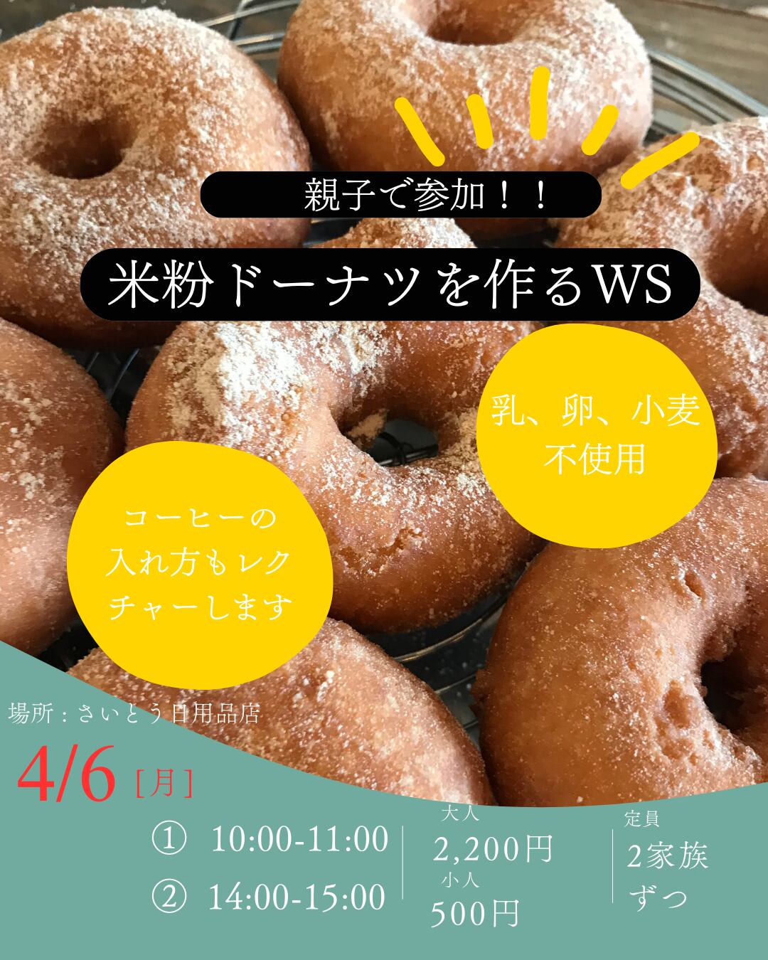こちらは 4月開催の 親子で参加米粉ドーナツWS 事前予約・決済ページです。